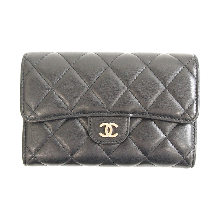 シャネル CHANEL 三つ折り財布 マトラッセ ラムスキン ブラック 黒 ゴールド金具2