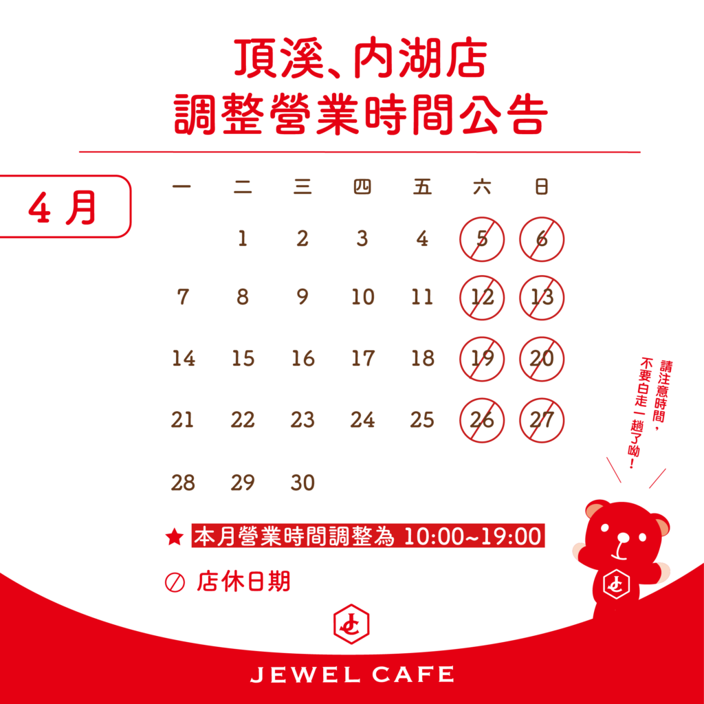 ●頂溪、內湖店營業時間:星期一至五10:00~19:00、六日店休。