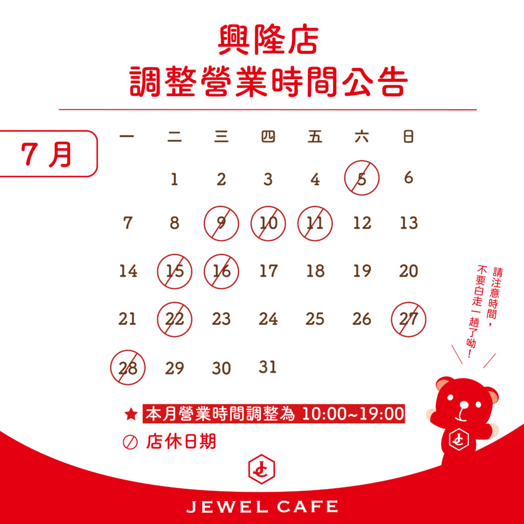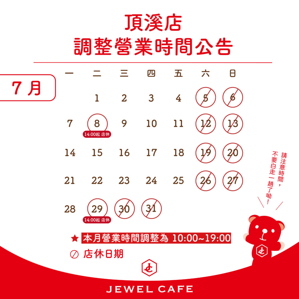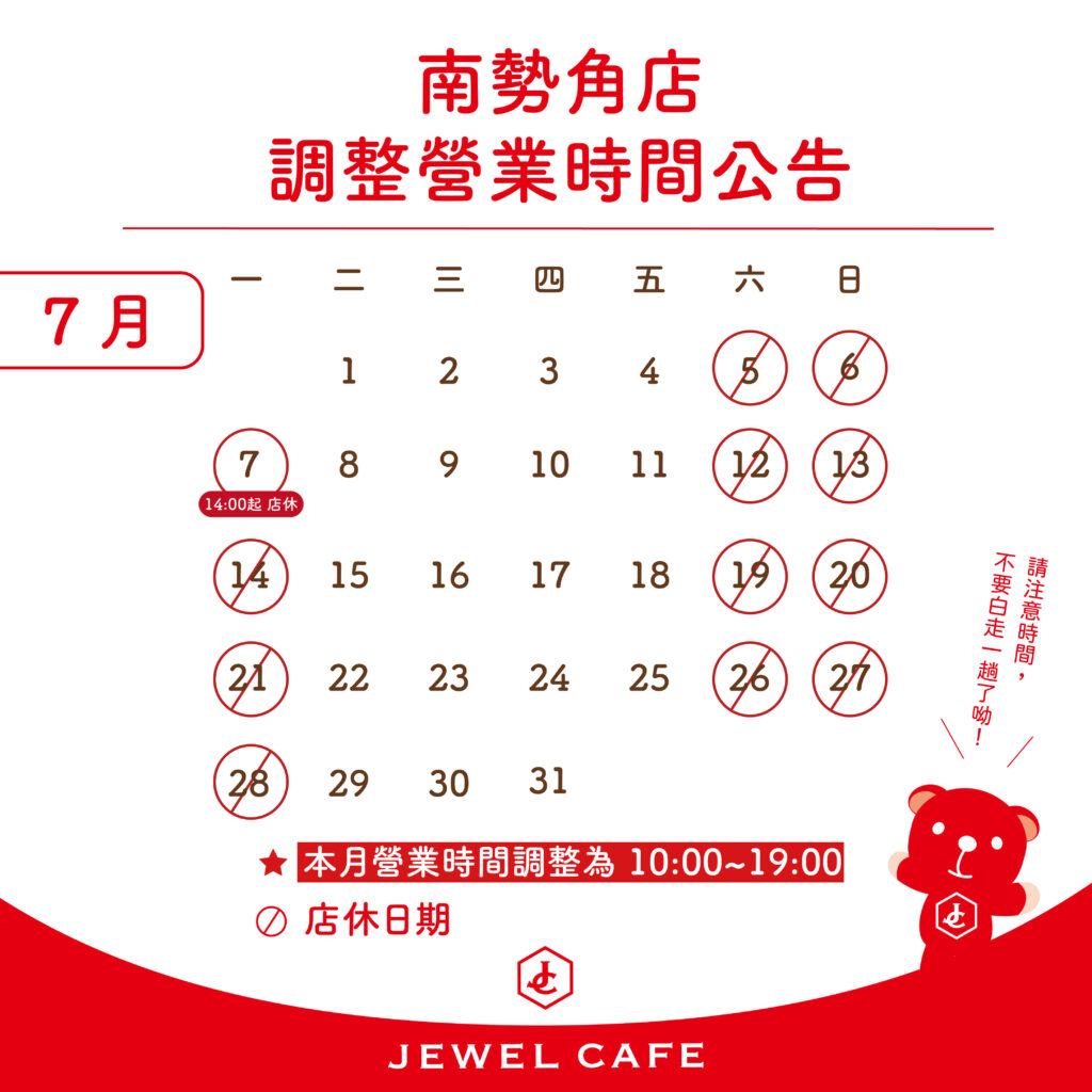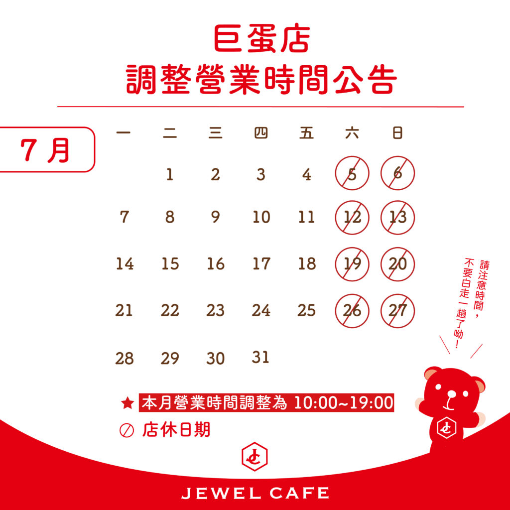 店休日:每週六、日、7/8至14:00、7/29至14:00、7/30-7/31