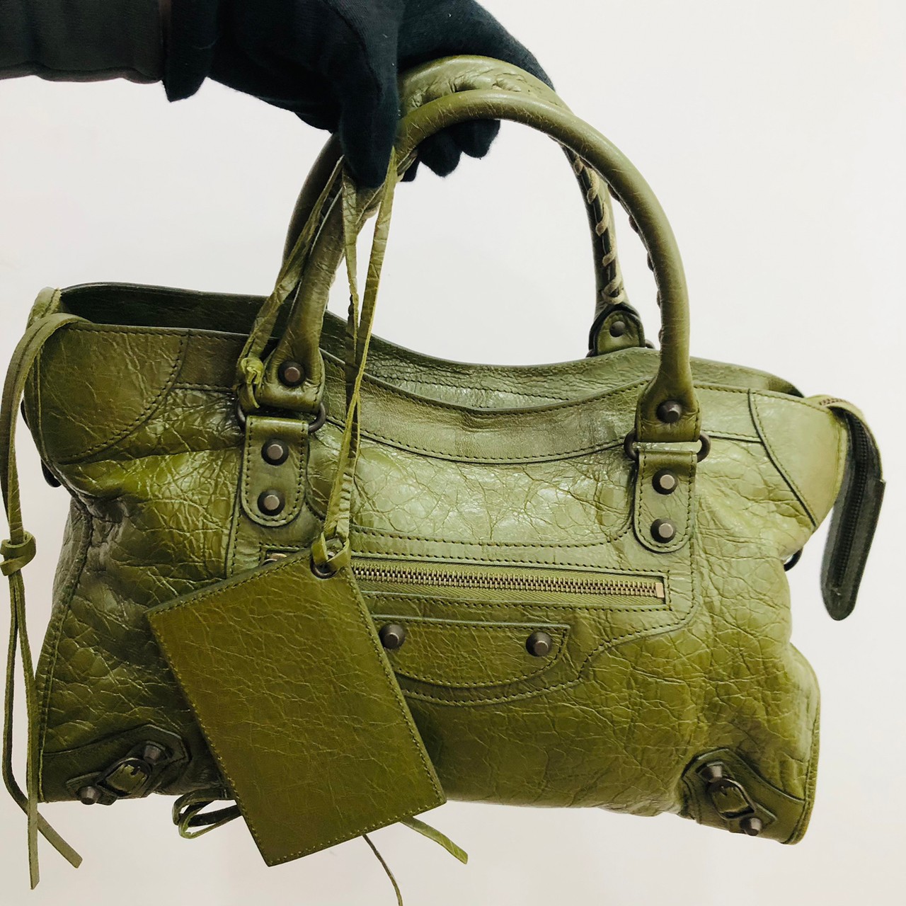 City包為Balenciaga代表作,它的特色是所有拉鍊開關部分都配有獨特的繫繩、CLASSIC系列的小鉚釘、附帶一面鏡子皆為巴黎世家設計機車包的理念之一。