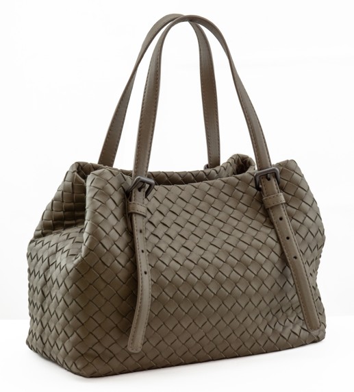 採用光滑柔軟的小牛皮製作,專業職人以手工的方式編織製作包包,再細心的將金屬扣環一個一個安裝上去,因為附有揹帶可以調整長度,所以適用在各個場合。