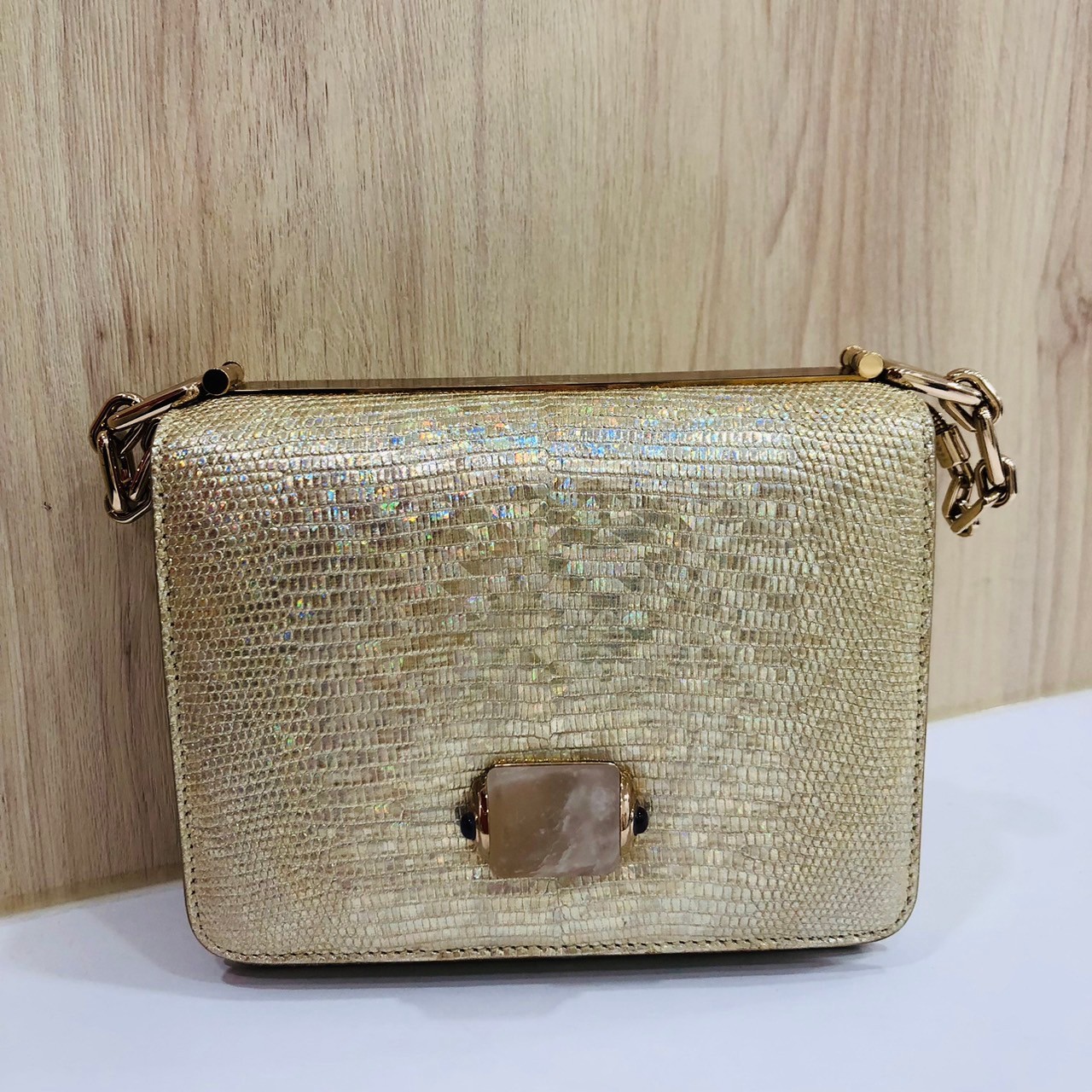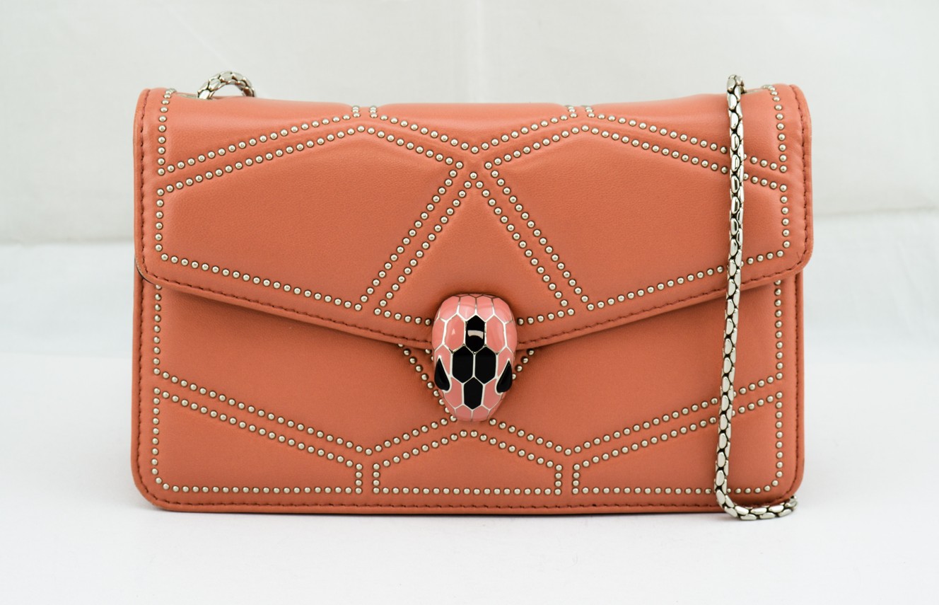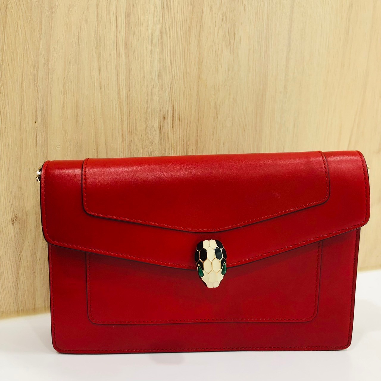 象徵BVLGARI 寶格麗一個特點,SERPENTI在義大利文是「蛇」的意思。此包款採用小牛皮材質搭配上以「蛇」為設計靈感創造出迷人的蛇頭扣環琺瑯,配上可拆式蛇鍊,肩背或側背兩種背法任何場合都適用。