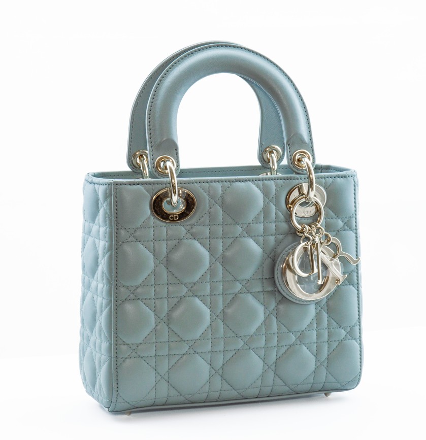 Lady Dior如同其名以建築感線條、金屬字母吊飾及藤格紋圖案成為品牌的經典之作,以其優雅高貴而著稱。法國總統席哈克的夫人當年將Lady Dior送給黛安娜王妃當會面禮物,這款包深得黛妃喜愛並經常使用,從此便獲「黛妃包」的暱稱。