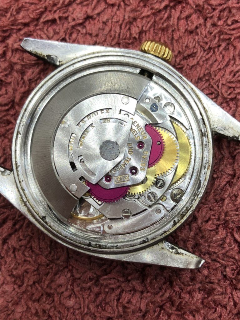 加上經傅先生同意後現場拆蓋來看,哇哩!居然不是原廠機芯,也就是俗稱的「白底紅肉」。
