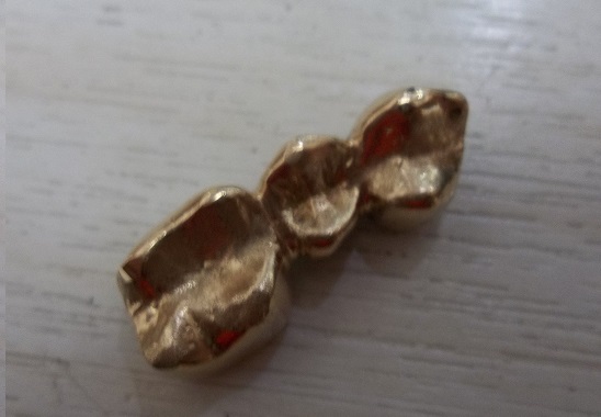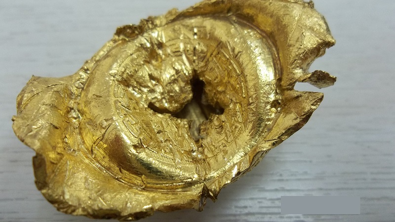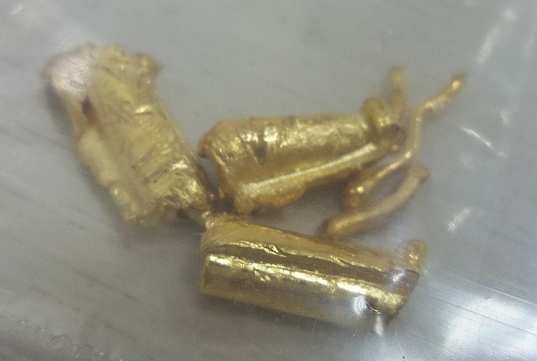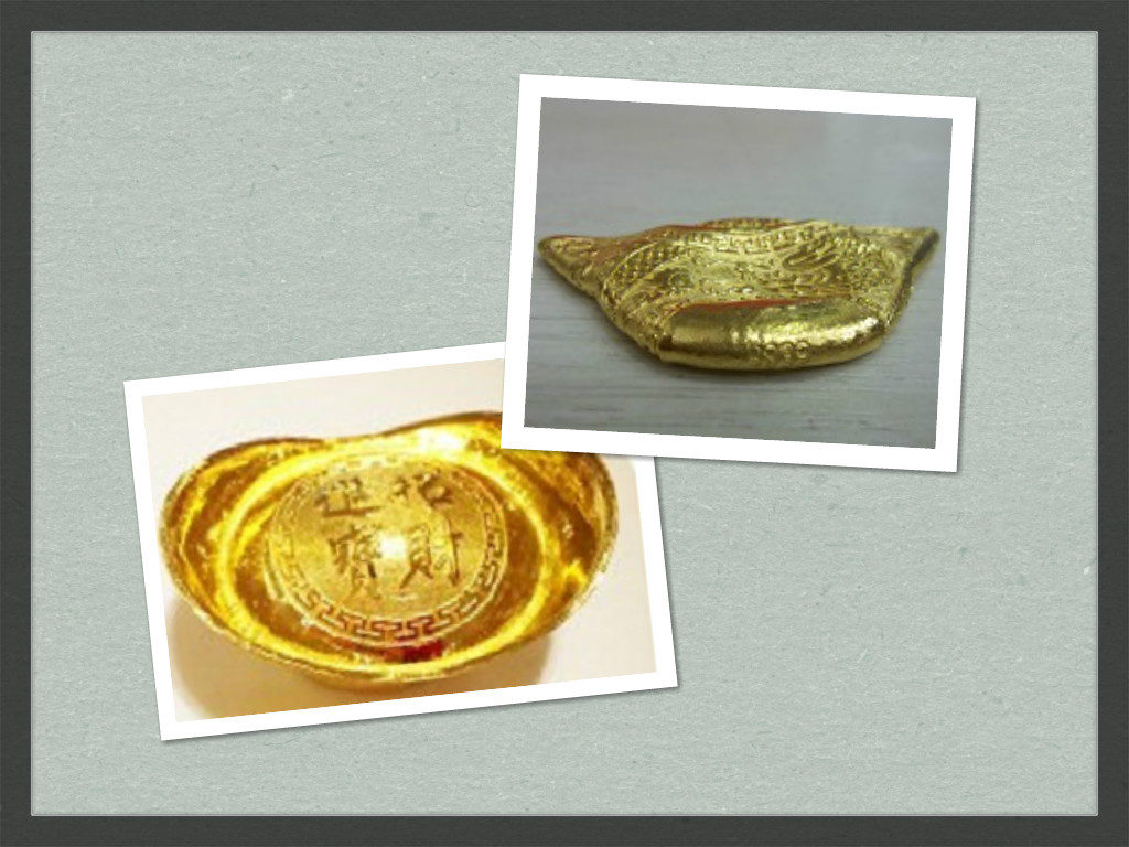 但比較奇妙的是其中一塊像金塊的商品有被剪開的跡象,