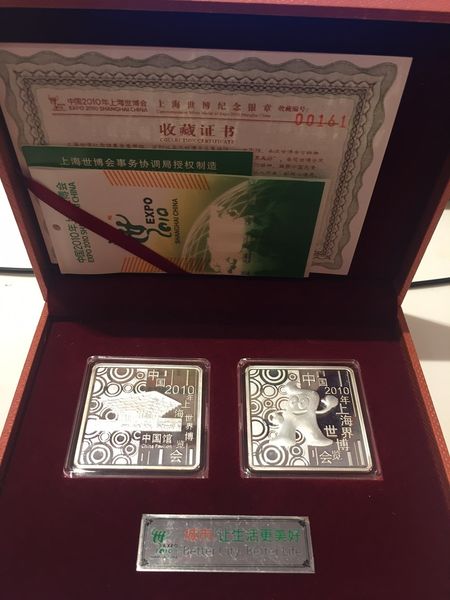 此紀念銀章全套兩枚,是以2010年上海世博主要場館—中國館及海寶為主題,