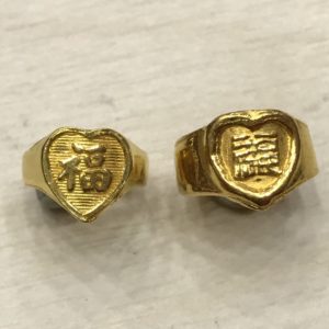 顏色二個也是有落差,左戒偏鵝黃、右戒偏深一點,甚至左戒還有刻印千足…結果最不純!!