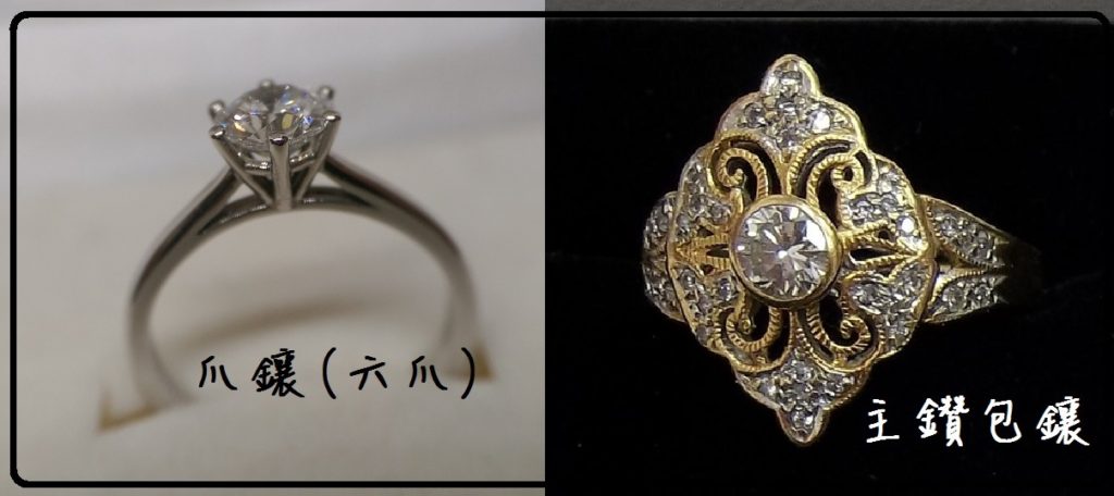 一般鑽石鑲製在黃色K金戒台上,通常成色偏黃較不佳,