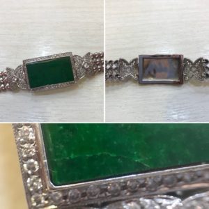 再細看一些會發現,玉石有撞傷的裂痕,較難整體估價,一般只能依照手鍊材質回收。