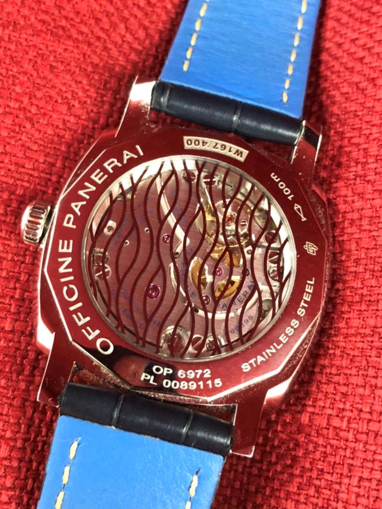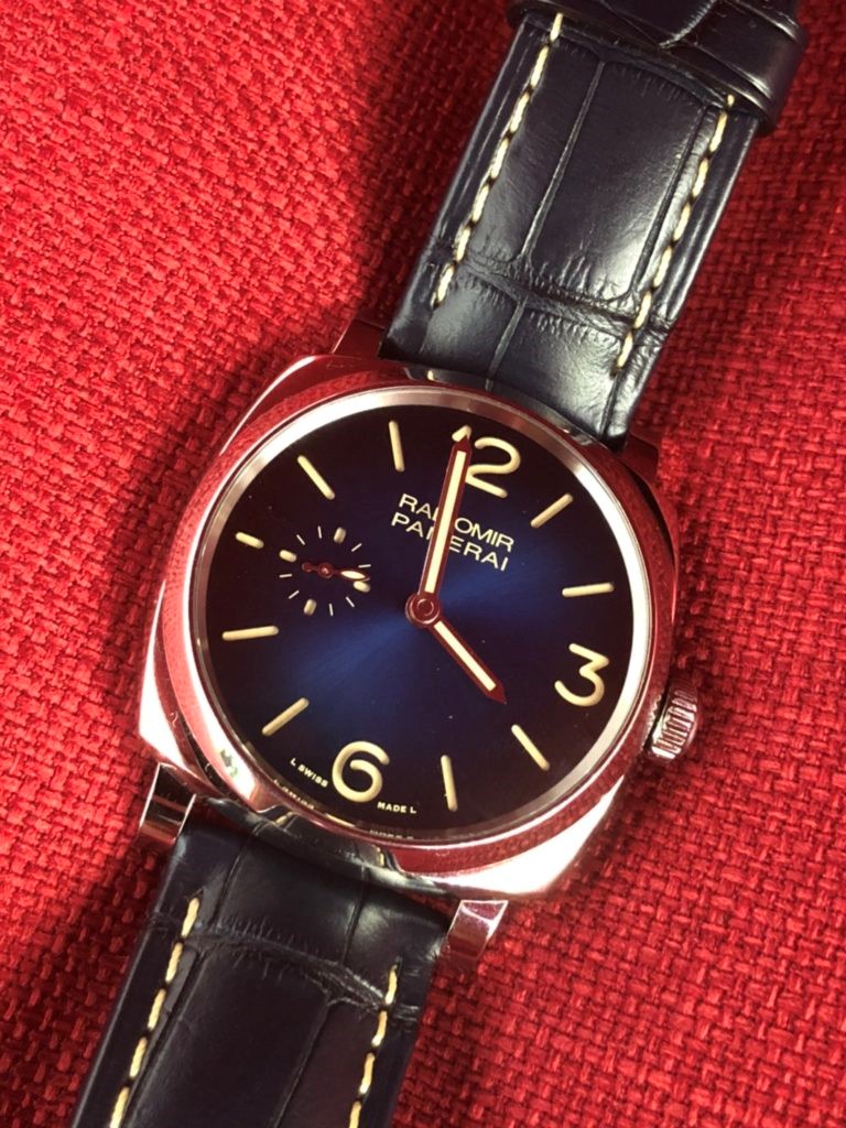 全新沛納海擁有藍色磨砂錶盤,以及深藍色的錶盤,