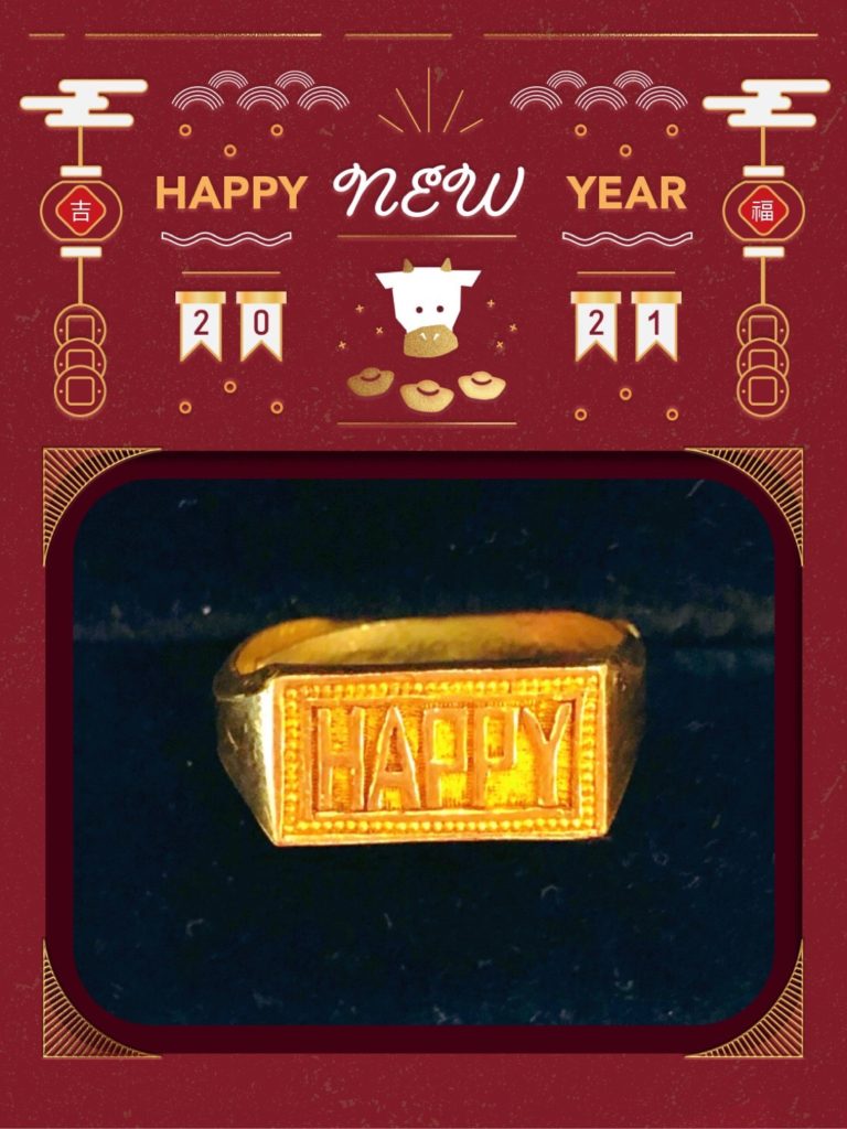 HAPPY戒指是過年時長輩送的禮物,因為蔡小姐從小在美國長大,