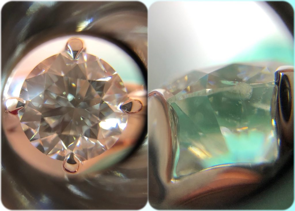 這是因為它的折光率高於鑽石,但也因為折光率高,所以用放大鏡也能看到底部的紋路出現雙影,