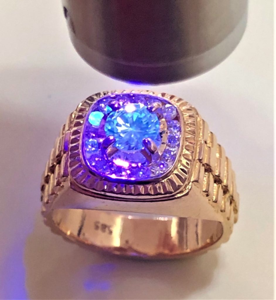 沒有真鑽石那種閃耀的彩色光芒,您可以裝一杯清水,將飾品放在水裡,