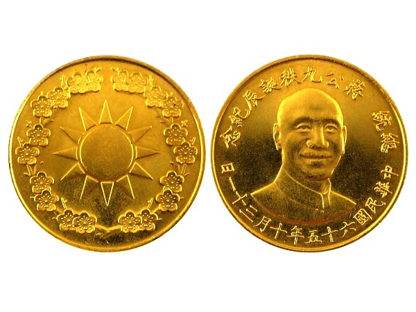 蔣公九秩誕辰紀念幣(發行日期:民國六十五年十月三十日)純度一律為22K!