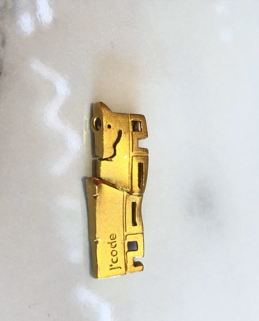 確認可以破壞矽膠鍊條後,檢驗中發現吊墜完全沒有刻印,