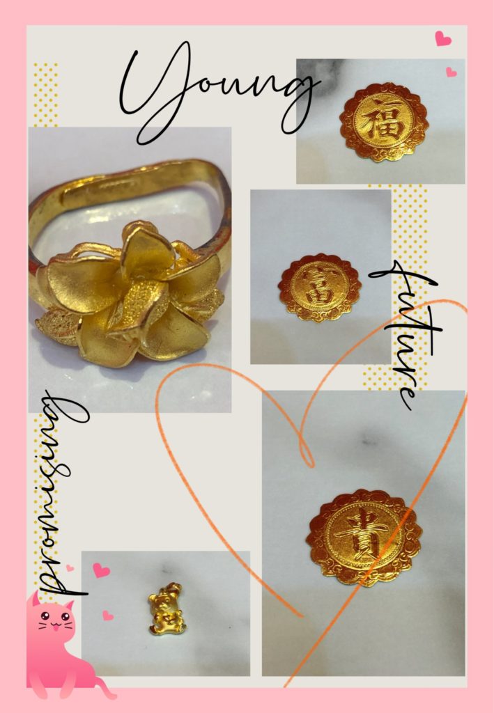 王小姐帶來以前長輩送給小朋友的彌月金飾金,