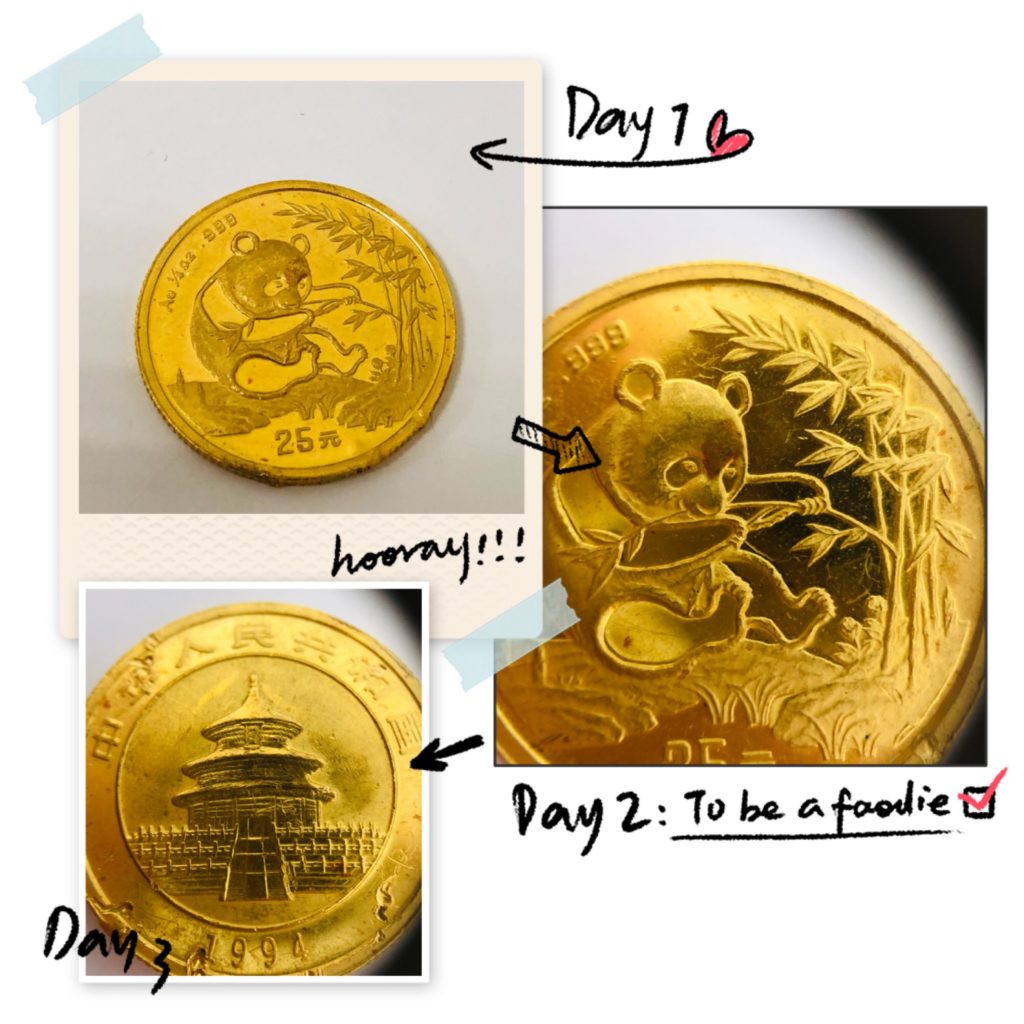 經過一一檢驗後,真的發現了寶藏,一個熊貓金幣,