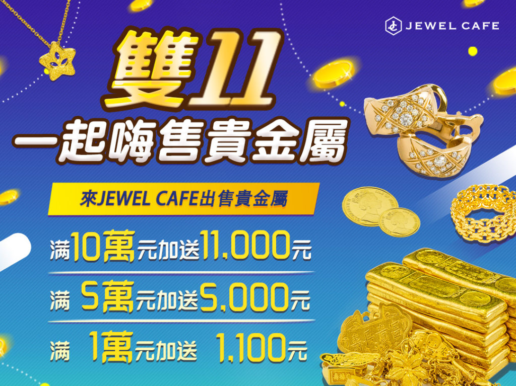JEWEL CAFE更加碼提供了????雙11一起嗨受貴金屬????優惠活動,
