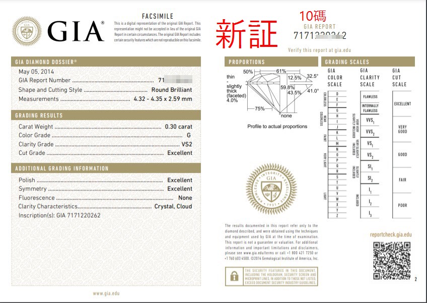 ↑金證(新證):2014年後,證書&腰圍編碼10碼。對於4C條件判定較為嚴格。