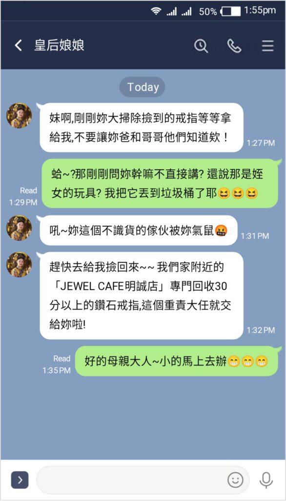 經由朋友洗腦鼓吹之下,瞞著老公買了將近百萬的珠寶。