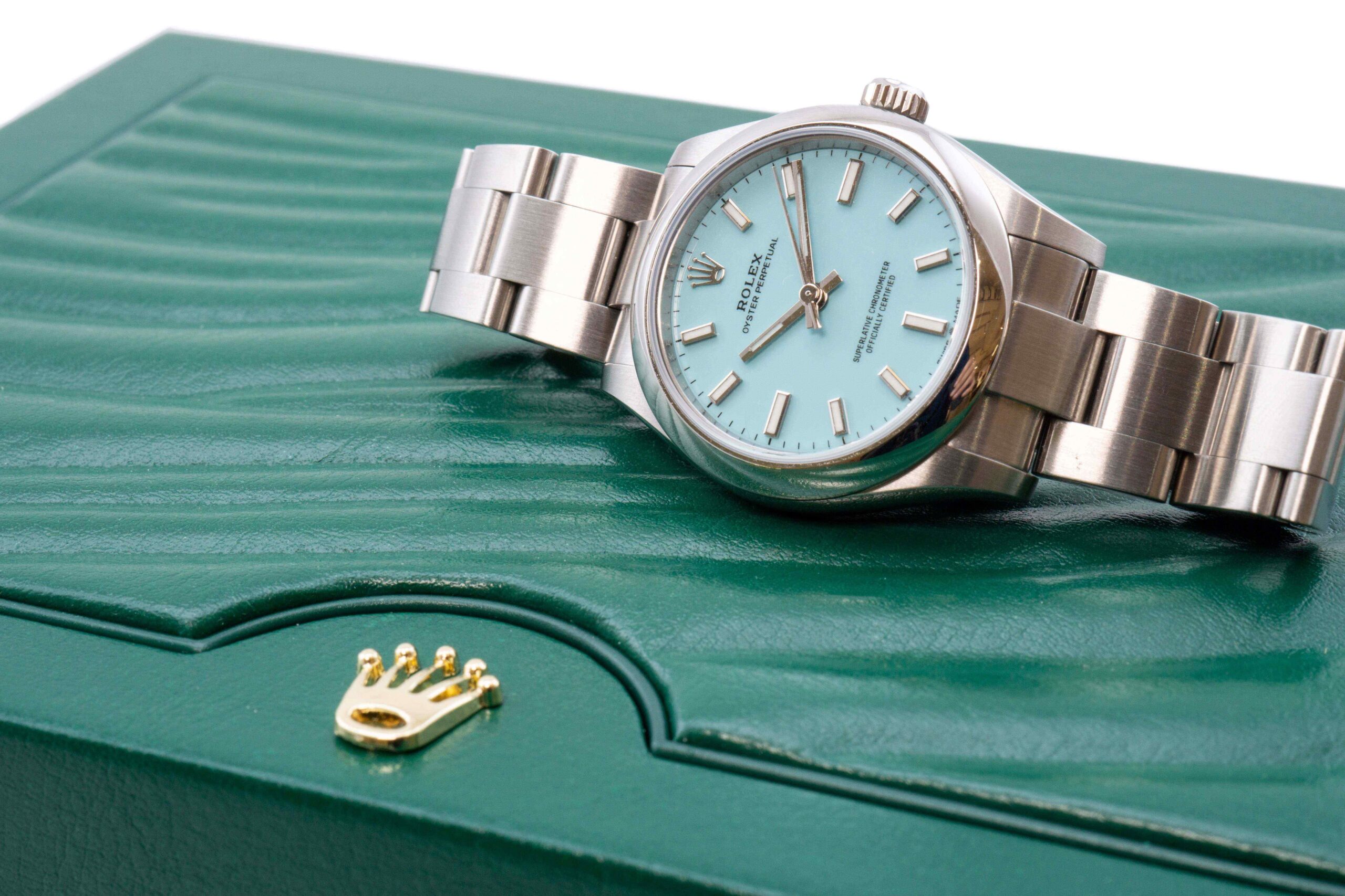 SS不鏽鋼搭配綠松石藍色錶面,直徑為31毫米