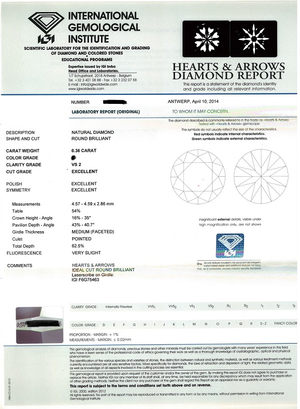 IGI證書不同於GIA針對鑽石的切工信息更為詳細,