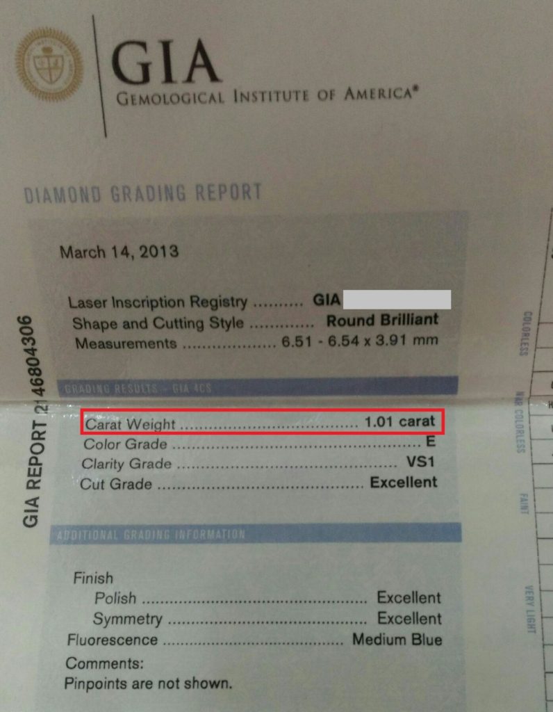 店家開立的證書,可惜都只能作為參考,不能代表鑽戒實際