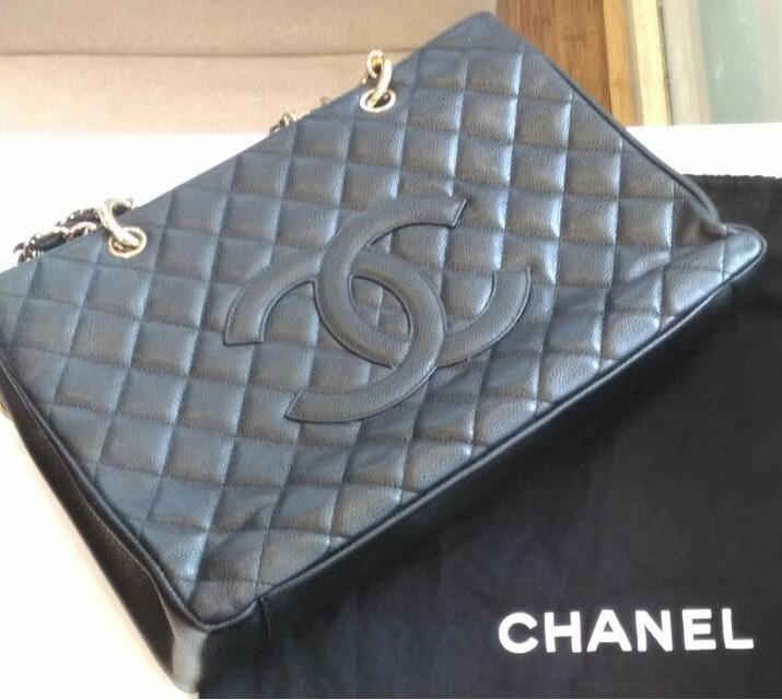 外表使用荔枝牛皮,經典的菱格紋,大雙C LOGO,黑色金鍊帶,