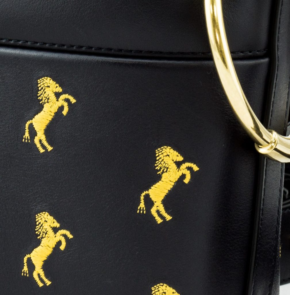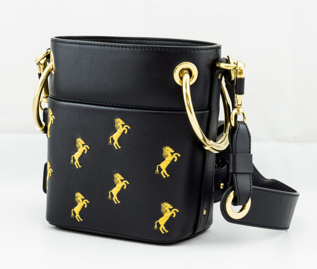 最受歡迎的就是這款光滑的小牛皮+黃色小馬刺繡圖案。
