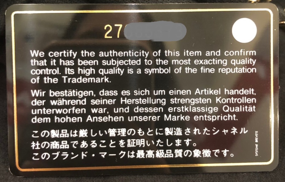 經過鑑定人員分享,香奈兒的包包都會附上一張黑色保卡,