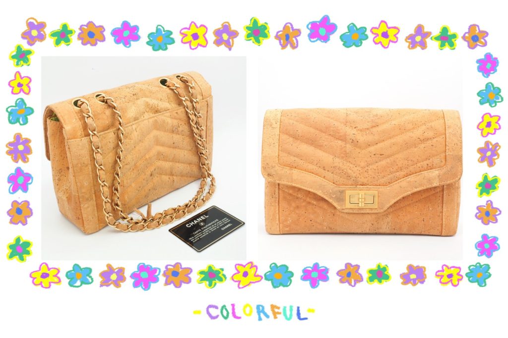 下圖為CHANEL 2.55山形紋軟木皮革材質包包: