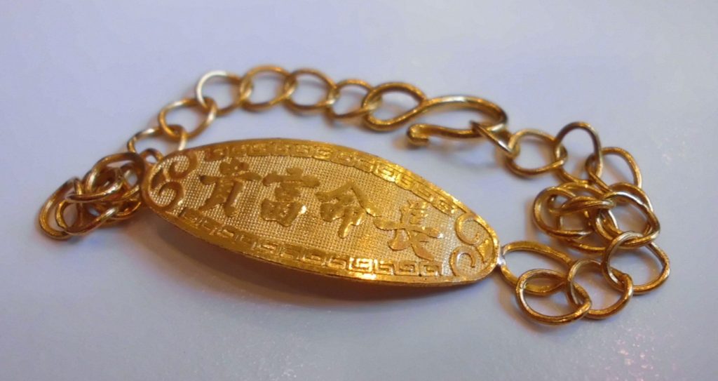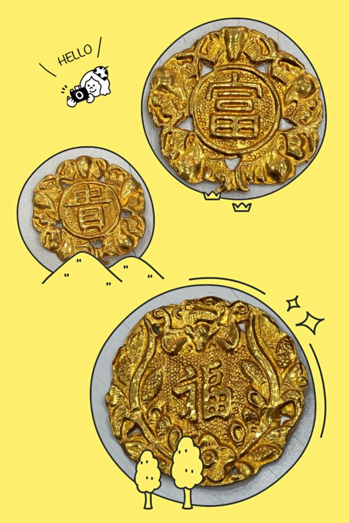 黃金製成的金鎖片則有祝福寶寶長命百歲,永享榮華富貴的寓意。