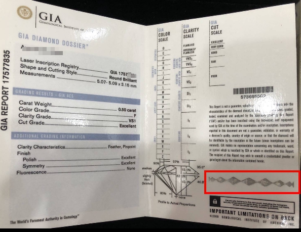 仔細看這個防偽條會顯示GIA的標誌與字樣,