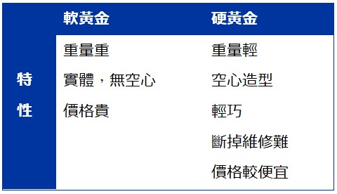 原來黃金也有分軟黃金與硬黃金,