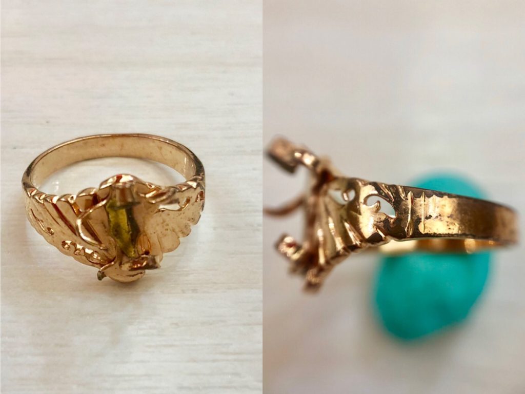 此時老奶奶從包包拿出一枚舊款的戒指,