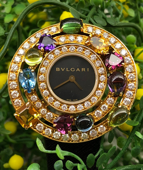 就是用七彩的藍寶石鑲嵌在錶圈而成。