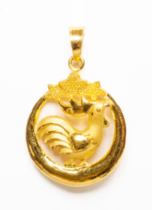 所以在金飾裡,公雞也是一種常見的造型唷!在芒種的節氣裡剛好JEWEL CAFE新埔店收下了一隻金公雞,