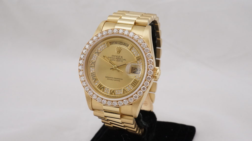 【 商品資訊 】 品牌:ROLEX 款式:DAY-DATE 材質:K18 Gold 今天小編來分享的是ROLEX的經典-Day-Date 說到Day-Date勞力士迷們一定不陌生,它在1956年以首款配置現代日曆和瞬跳星期顯示的防水自動上鏈天文台認證腕錶之姿問世,特別之處莫過於同時能顯示星期及日期的獨立視窗,堪稱當代的技術結晶。 時至今日,Day-Date搭載性能提升的3255自動機芯。面盤上的「Superlative Chronometer Officially Certified」代表的是官方鑒定認可頂級天文台時計,雖然在1973年後由瑞士精密時計測試中心(C.O.S.C.)整合所有的天文台時計的測試流程後,已經不會特別標示這些文字,但勞力士仍堅持這項傳統。 為了確保鏈帶的耐久性,勞力士特別在鏈節內嵌陶質組件,更柔順耐用,改善了貴金屬在長期使用後,會產生零件的磨損問題,此外,為了穿戴美觀與使用者配戴的舒適性,勞力士採用隱藏式的連接設計,確保錶帶與錶殼達成無縫的連接效果;而錶帶中央拋光的第二個鏈節,則是錶帶轉動的樞紐,提升錶款的服貼程度,也能避免配戴時錶款容易滑動。 若您家中也有ROLEX勞力士要收購,歡迎您來到JEWEL CAFE向上店出售! (閱讀全文…)