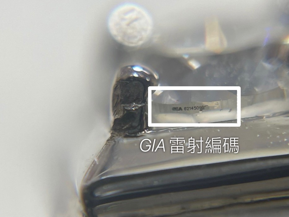 有GIA證書的鑽石,在腰圍上都會有專屬於他自己身分證字號的雷射編碼!