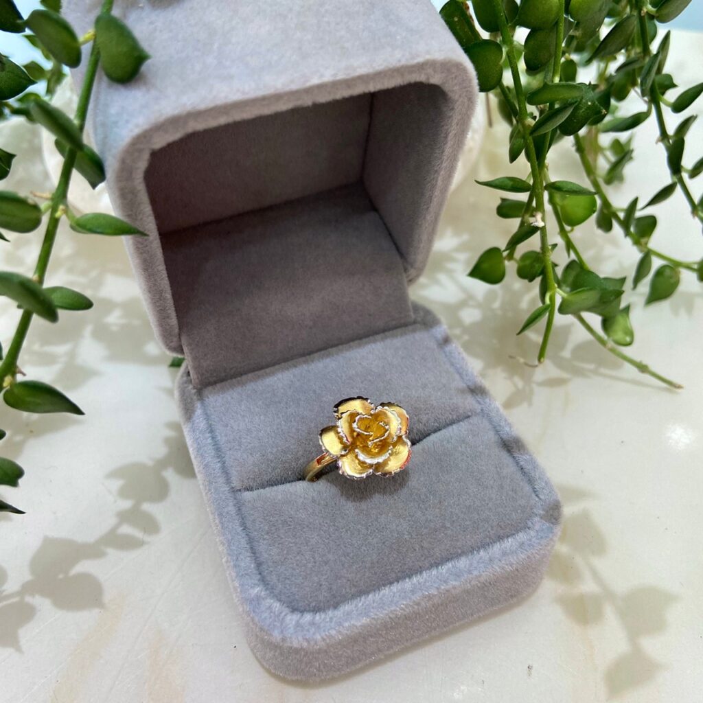 大家看看圖片中的玫瑰戒指是不是很像純黃金製的呢!?