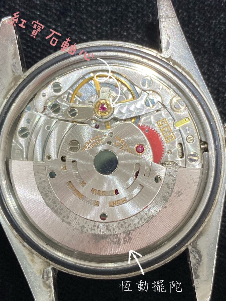 上圖中的紅寶石軸心,可稱之為勞力士的心臟,