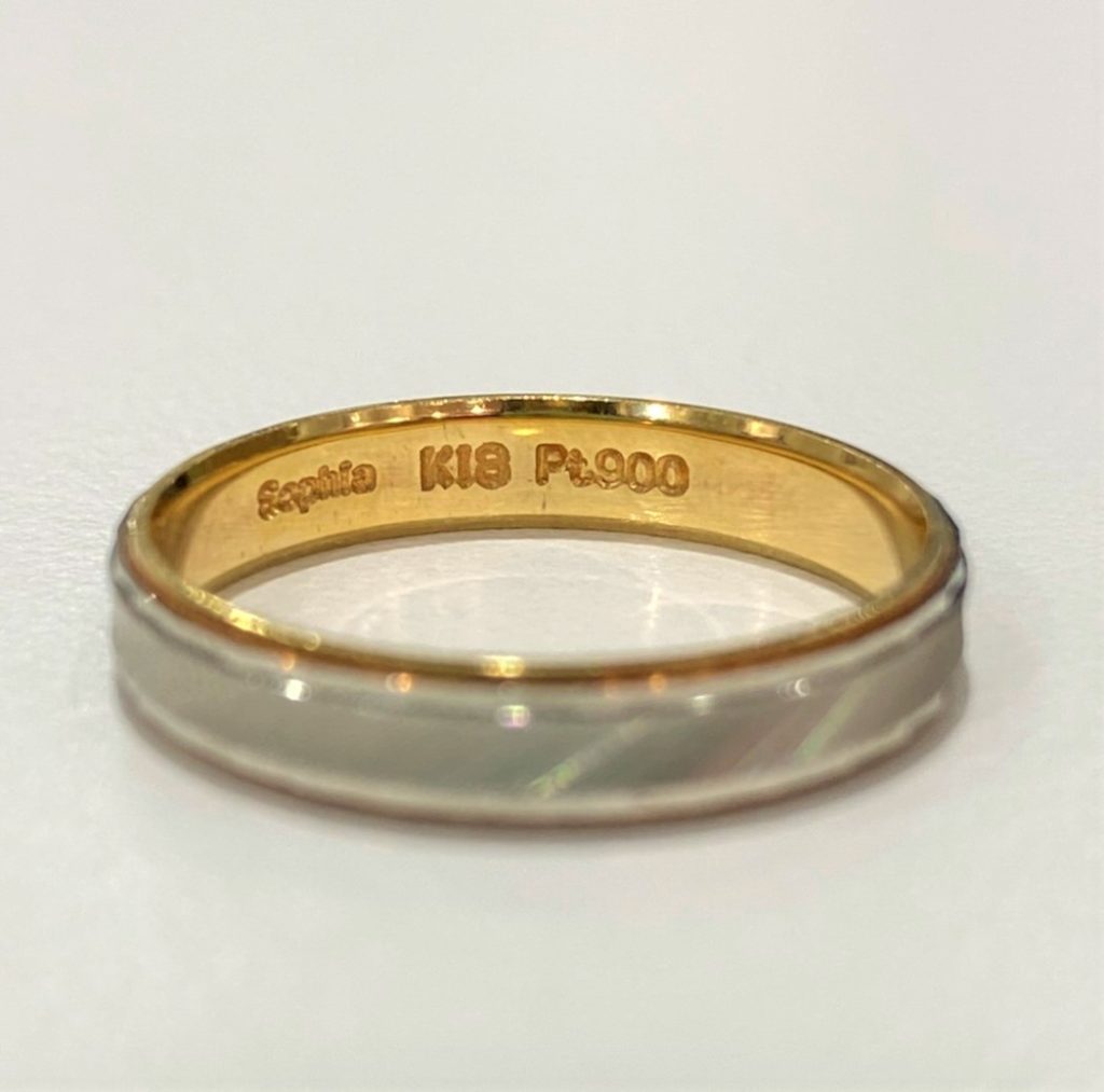 如上圖所示,這枚戒指是用K18及PT900製作而成,