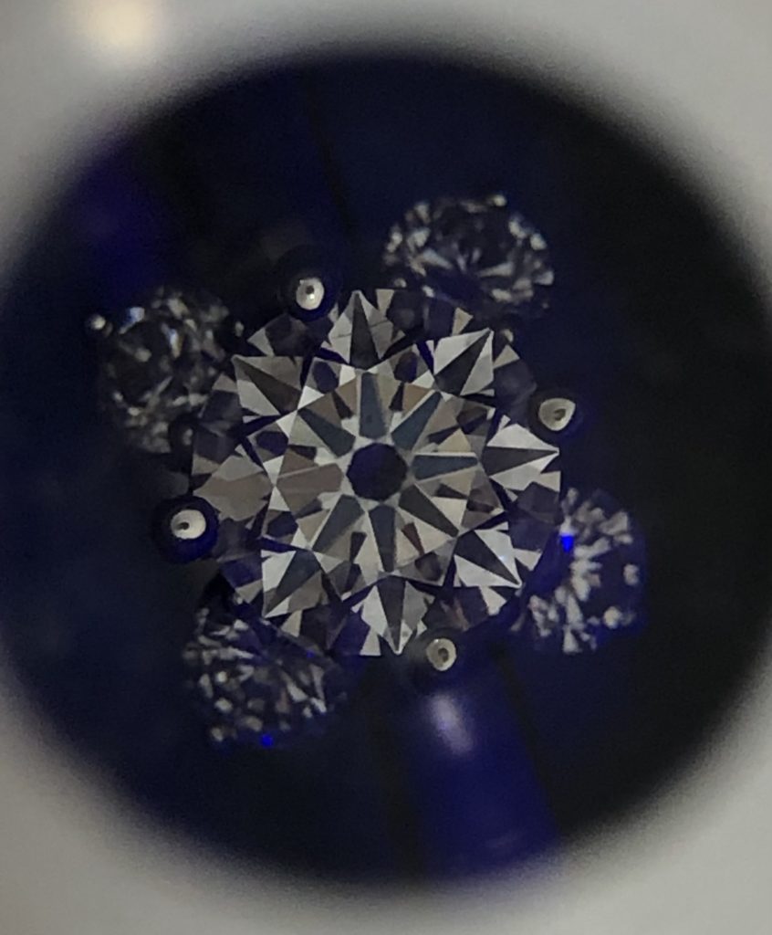 使光線從鑽石的58個瓣面的角度折射出似八心八箭的特別圖案的影像。