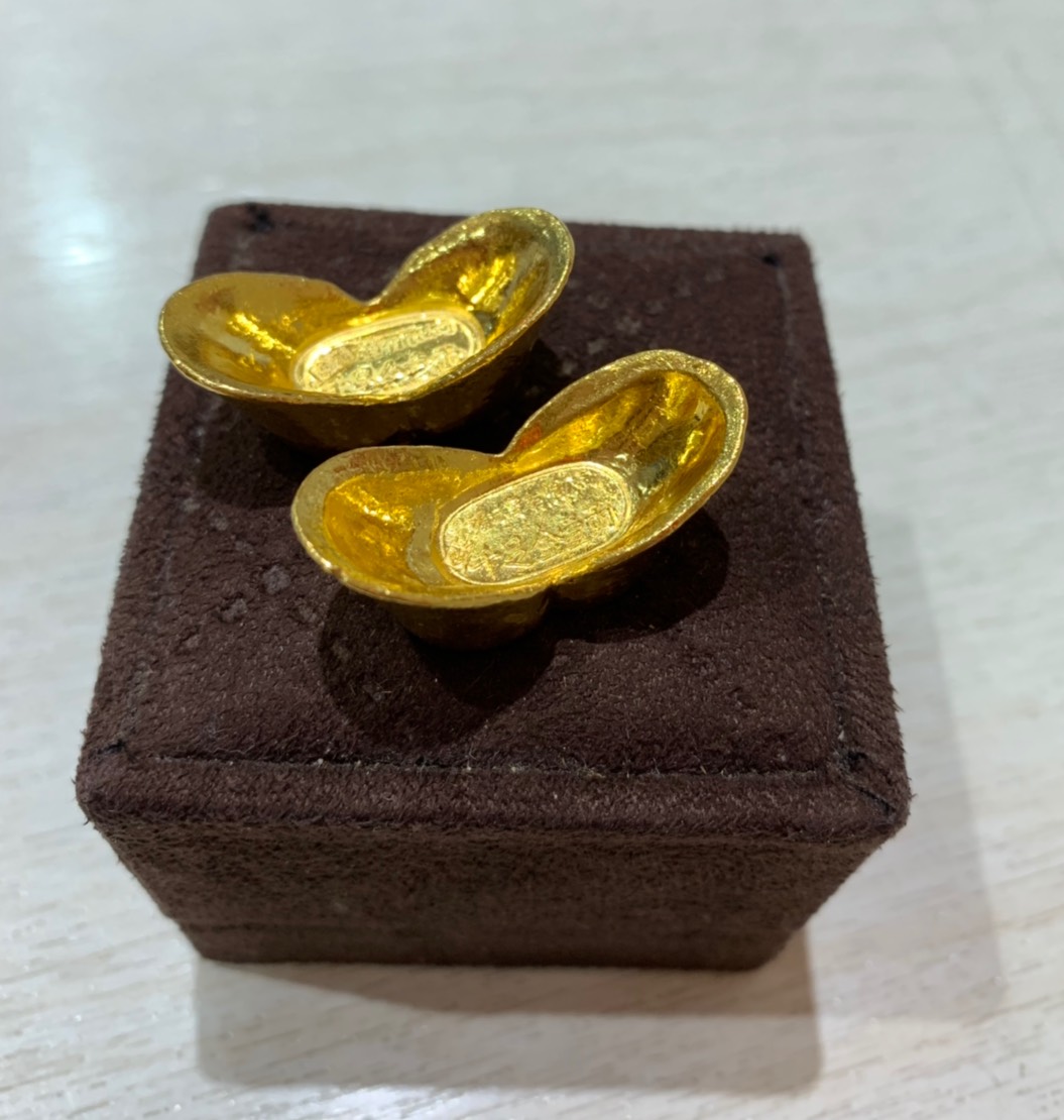 徐大姊帶著孫女一起進店詢問有關收購元寶的問題。當徐大姊拿出元寶後,小編好開心,是實心元寶耶,又正逢過年期間,感覺一整年都會有好運。