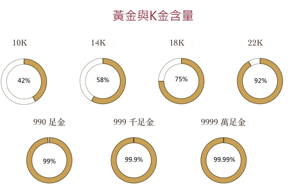 基本上,只要純度不足99%的都會被歸類為K金而不是黃金,