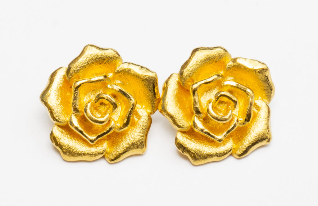 也富有多樣性,以今天介紹的黃金玫瑰耳環為例,就是利用了5D硬金的技術,