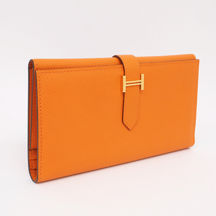 HERMES 橘色 Epsom 皮革 Bearn 三折長夾