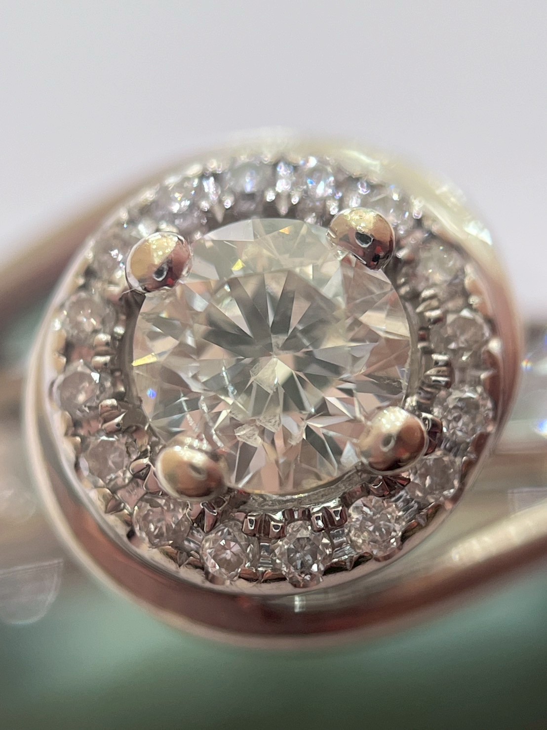 我們買了鑽石戒指0.80CT/0.13CT K18YG!