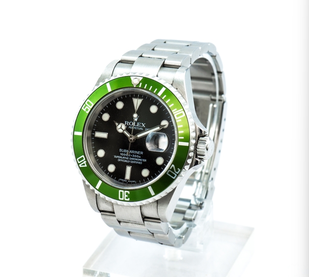 SUBMARINER也就是眾所周知的水鬼系列,系列錶款包括藍水鬼、綠水鬼及黑水鬼。此錶款為日曆型,搭配蠔式錶帶與帶扣,防水深達300米,是富有品味及愛好潛水之專業人士的首選!內部所搭載的自動上鍊機芯,會藉由手腕的擺動來帶動機芯的自動盤旋轉上鍊,讓手錶不需要換電池就能保有運轉動力。設計簡單大方,使用904L高硬度不銹鋼製造,錶面也是採用高硬度的藍水晶玻璃面,搭配獨特賓士指針與黑陶瓷外圈蠔式錶殼,設有保護扣鎖,耐用不易磨損!其旋轉外圈方便潛水員讀取下潛時間。