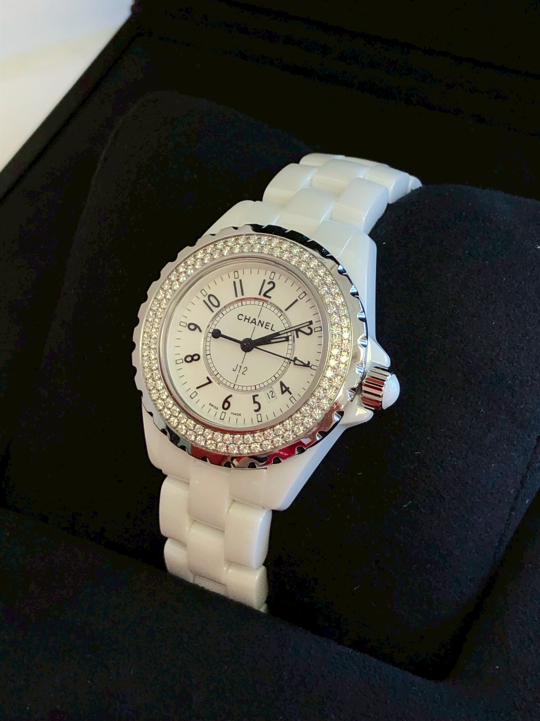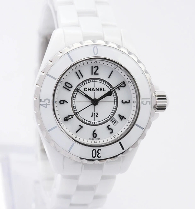 提到CHANEL的手錶,最經典的莫過於J12。自2000年推出第一款運動錶J12以來即受到廣大支持者喜愛,是一款不分性別年齡均可配戴的一款錶。J12的名字是源於國際賽船史上屢獲殊榮的帆船 J12,採用白色高科技精密陶瓷搭配鋼質錶殼,使用高精準石英機芯, 高科技精密陶瓷是經久耐用的材質,不易磨損,防水深度可達200米。陶瓷材質堅硬耐磨抗刮,硬度僅次於鑽石,服貼的弧度和設計,表面的鑽石粉末散發獨特的色彩跟光澤,傳達出 CHANEL 香奈兒永恆不滅的魅力以及堅毅優雅的精神。